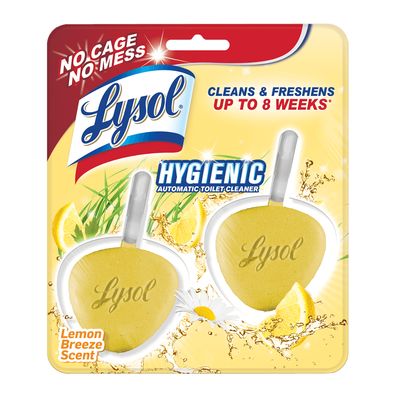 Lysol Hygienic Automatic Toilet Bowl Cleaner hangs on the inside of the toilet bowl to help you maintain a complete clean. Besides cleaning the toilet bowl with every flush, it also freshens the entire bathroom. It last up to 8 weeks and easy to use It contains antimicrobial protection in the hook to resist odour causing bacteria.