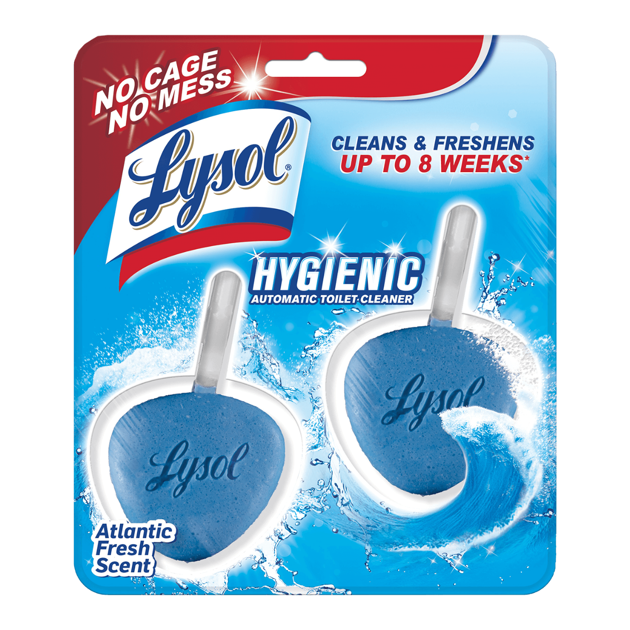 Lysol Hygienic Automatic Toilet Bowl Cleaner hangs on the inside of the toilet bowl to help you maintain a complete clean. Besides cleaning the toilet bowl with every flush, it also freshens the entire bathroom. It last up to 8 weeks and easy to use It contains antimicrobial protection in the hook to resist odour causing bacteria.